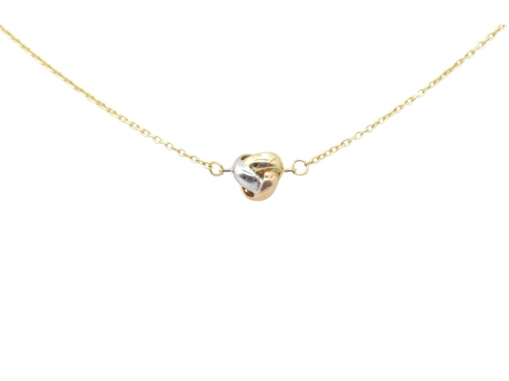 Řetízek - náhrdelník ze žlutého zlata, zdobený 3 propojenými kroužky ze 3 barev zlata