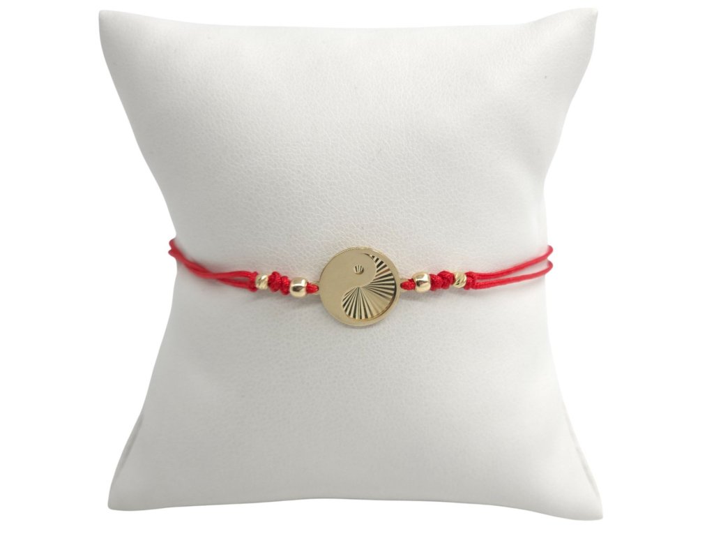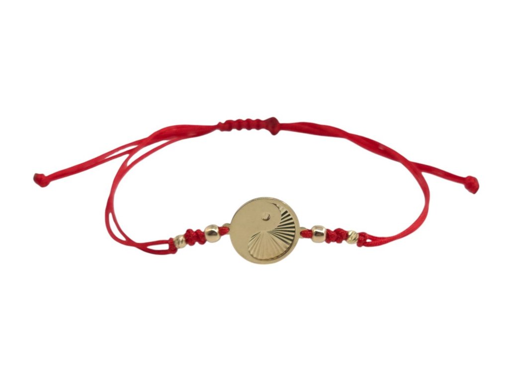 Náramek - Jin a Jang a kuličky, červená šňůrka 1,30 g, Au 585 0,98 g