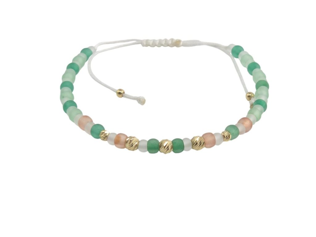 Náramek - korálky mix a zlaté kuličky, bílá šňůrka, 2,92 g, Au 585 0,45 g