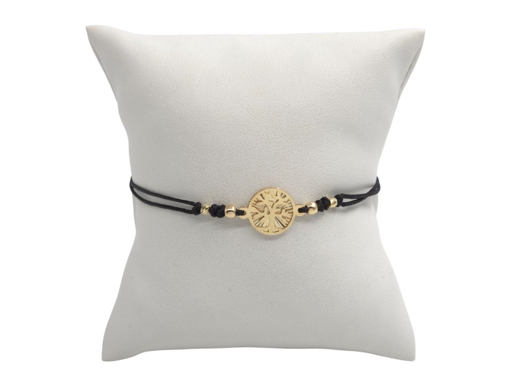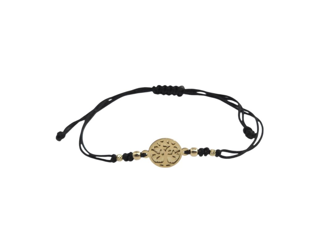 Náramek - strom života a kuličky, černá šňůrka 1,25 g, Au 585 0,92 g