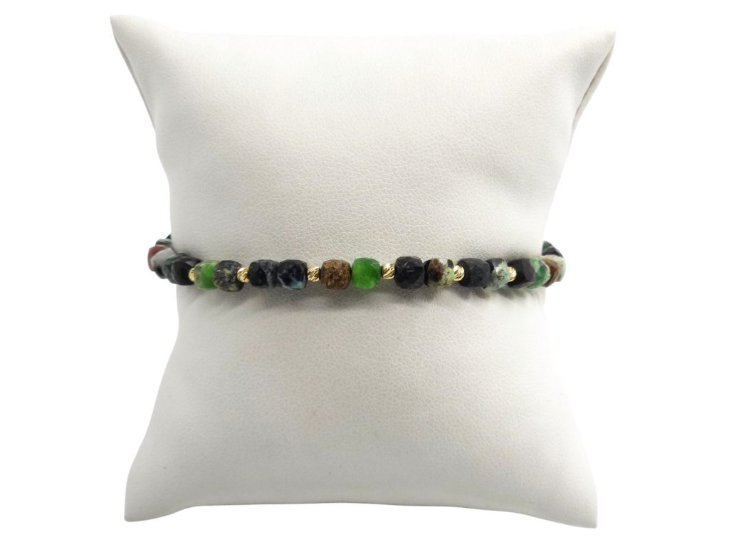 Náramek - tyrkys africký a zlaté kuličky, černá šňůrka, 4,57 g, Au 585 0,49 g
