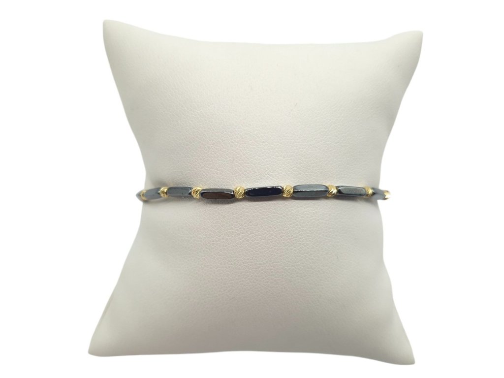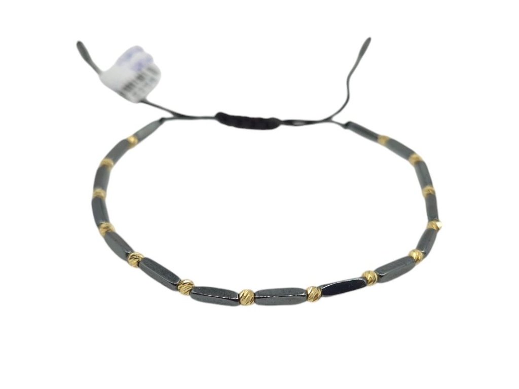 Náramek - zlaté kuličky a hematit, 0,50 g, Au 585