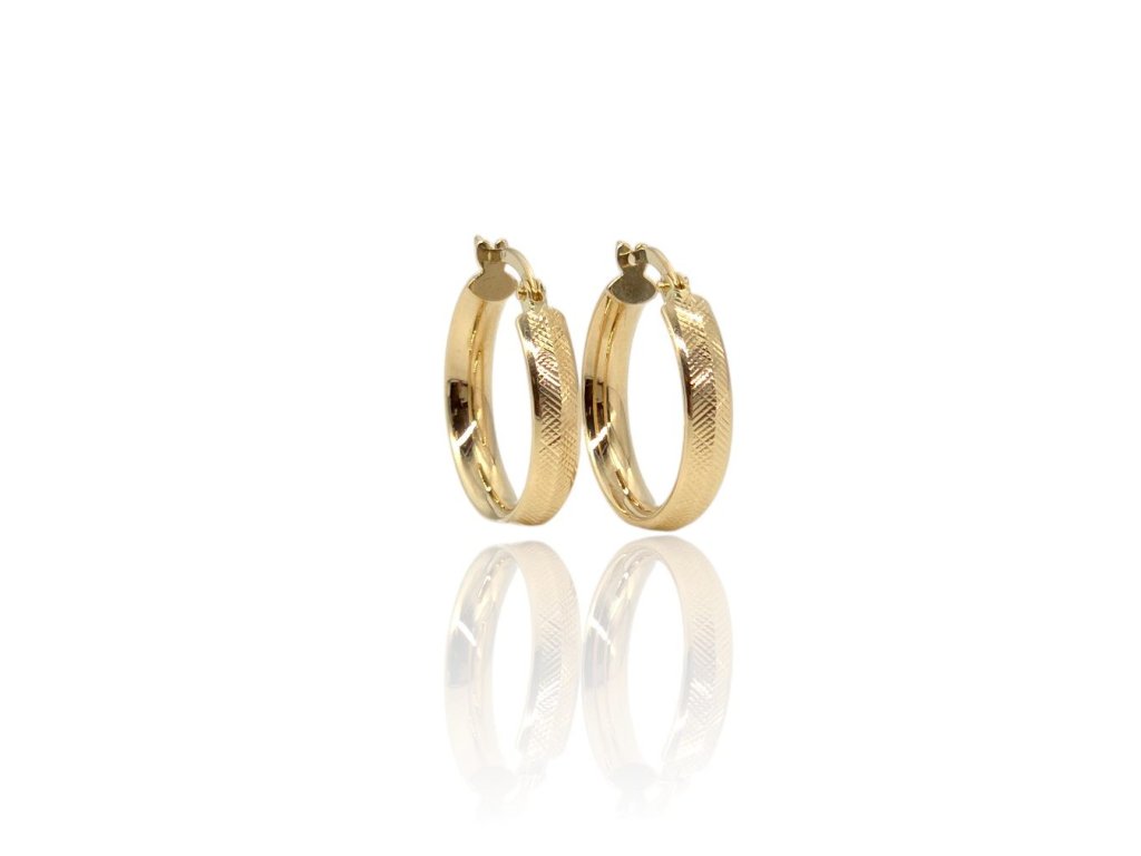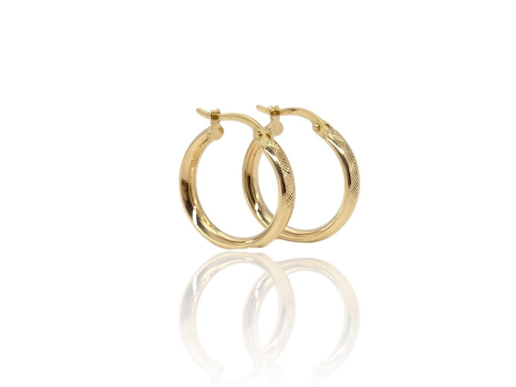 Náušnice ze žlutého zlata - kruhy duté - gravírované