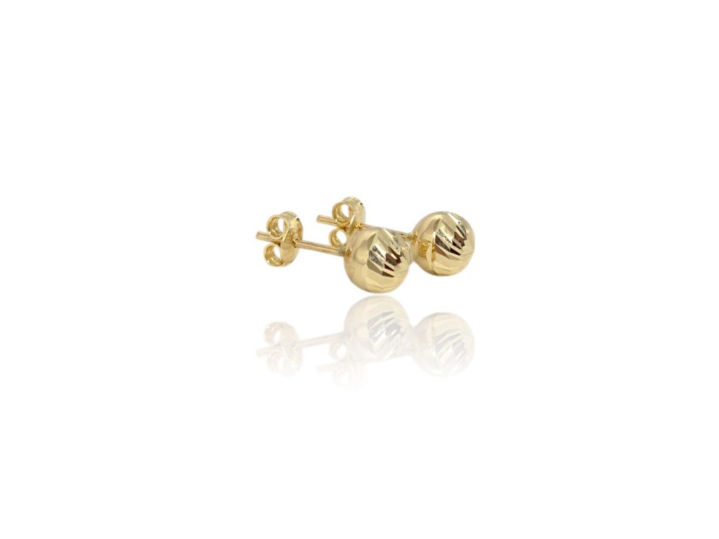 Náušnice ze žlutého zlata - kulička gravírovaná - puzeta