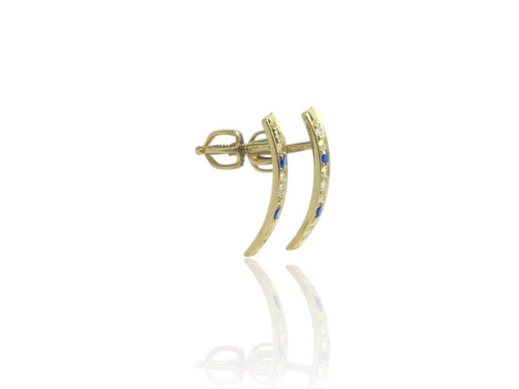 Náušnice s modrými a bílými kamínky, 1,78 g, Au 585