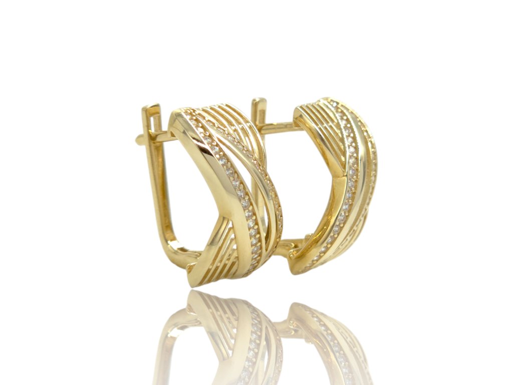Náušnice ze žlutého zlata osazené zirkony