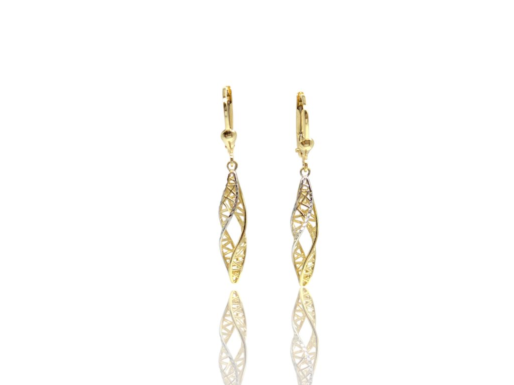 Náušnice ze žlutého zlata - visací spirály, zdobené bílým zlatem
