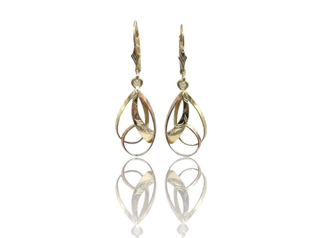 Náušnice visací, kombinované ze žlutého a růžového zlata