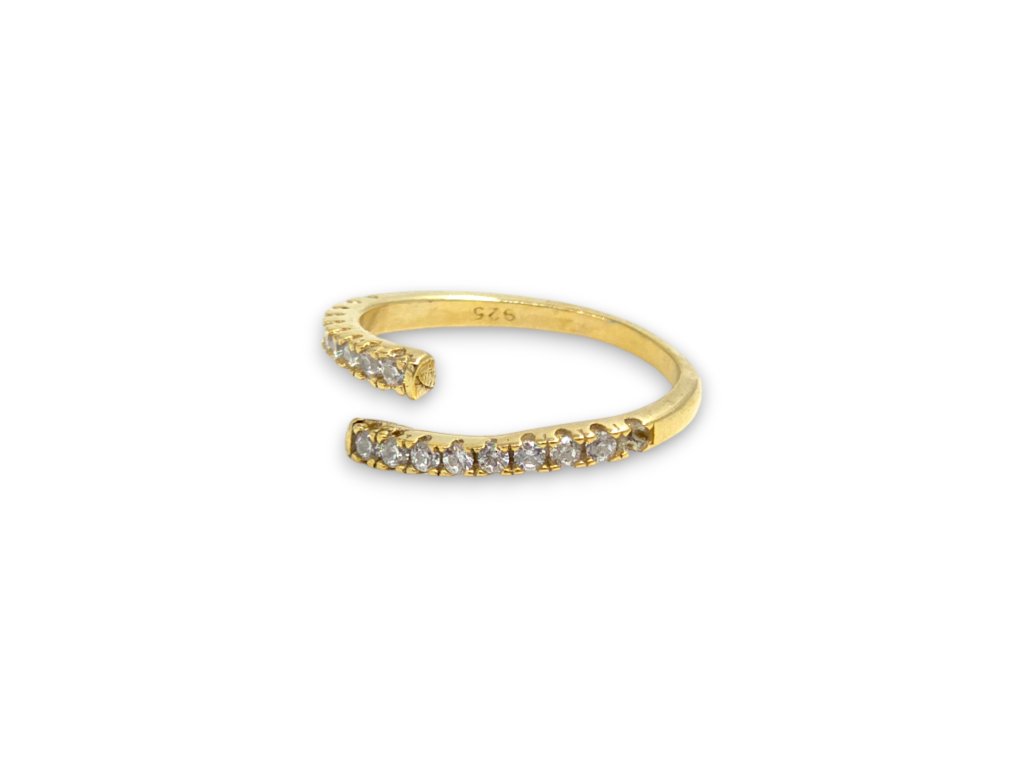 Pozlacený stříbrný prsten se zirkony, otevřený, Ag 925