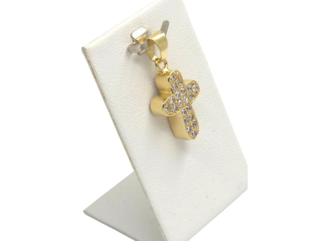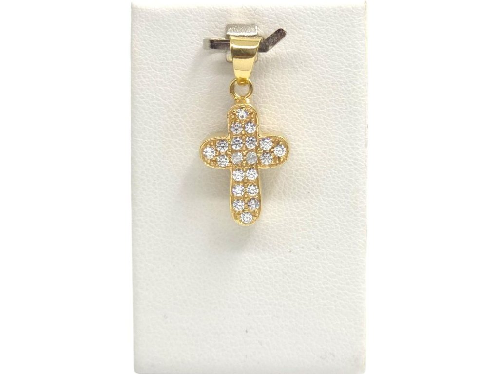 Přívěšek ze žlutého zlata - křížek se zirkony