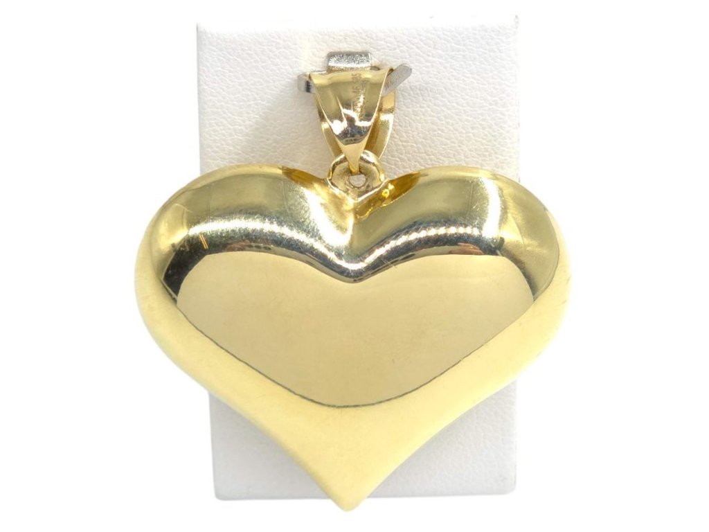 Přívěšek ze žlutého zlata - srdce duté - kombinace hladké a gravírované strany