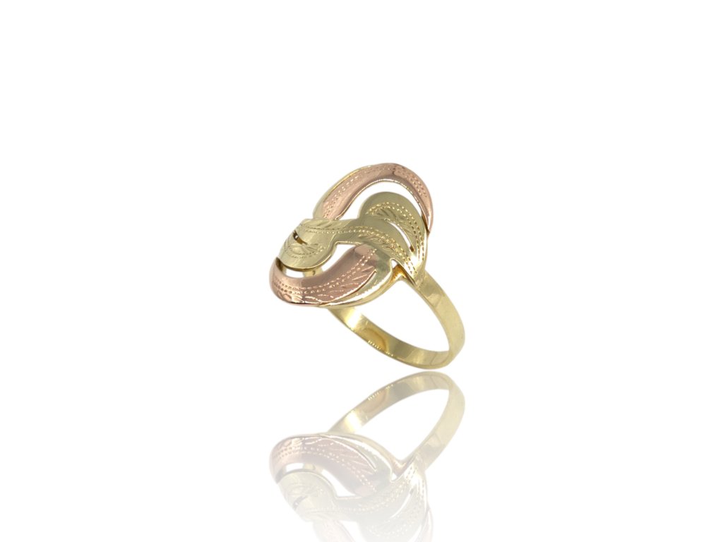 Prsten kombinovaný ze žlutého a růžového zlata, zdobený jemnou rytinou