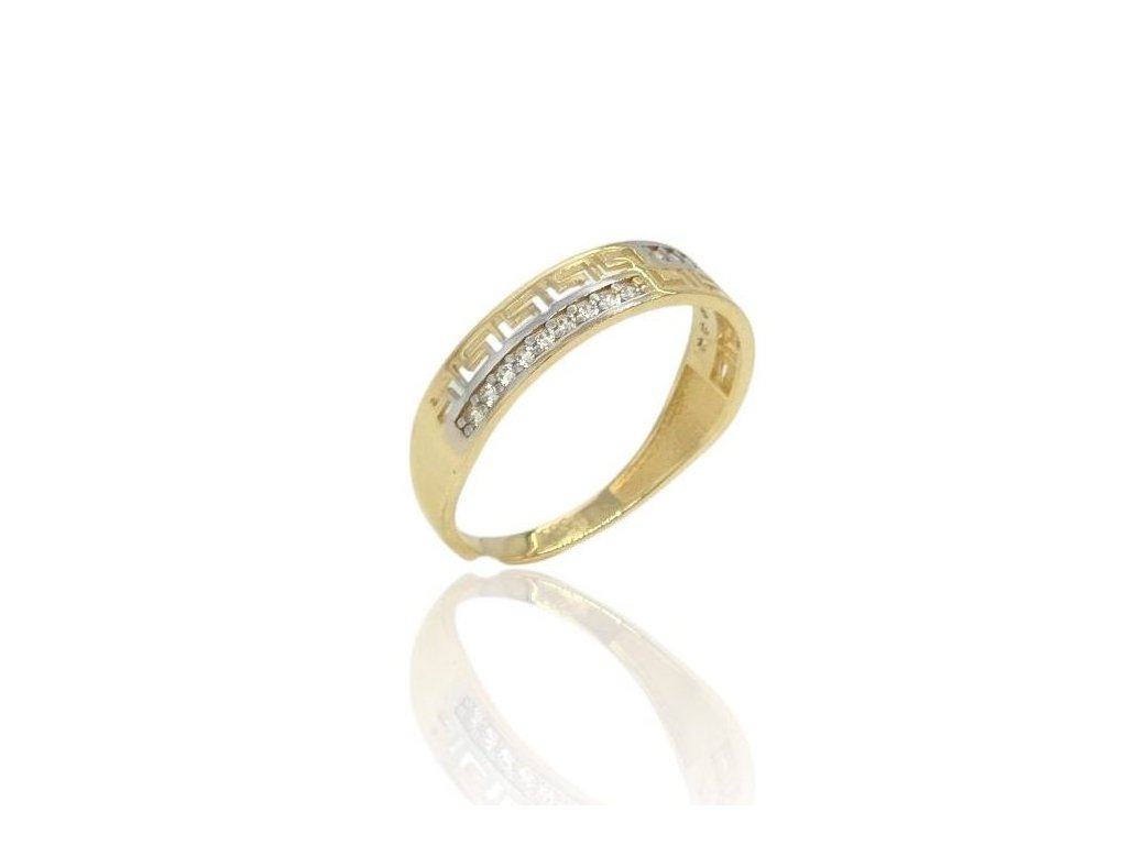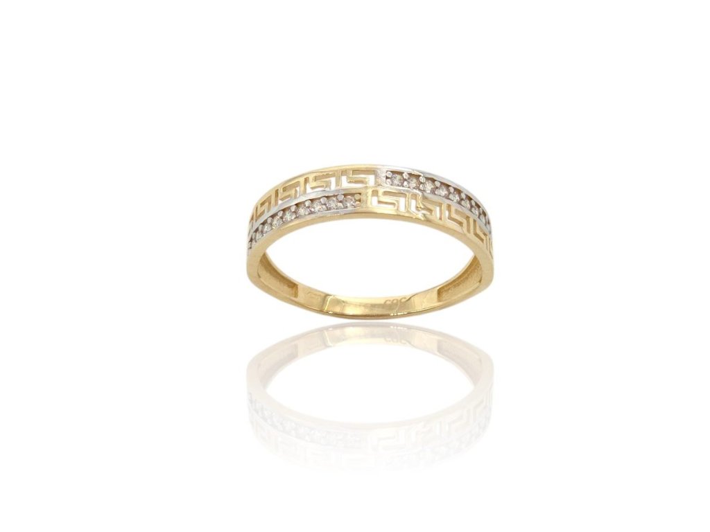 Prsten ze žlutého zlata - kroužek s řeckým vzorem osazený zirkony