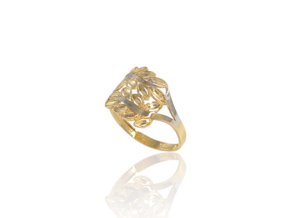 Prsten ze žlutého zlata - lístky - zdobený bílým zlatem