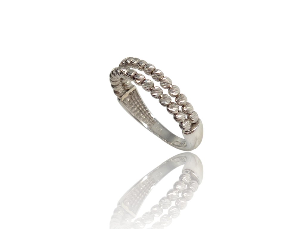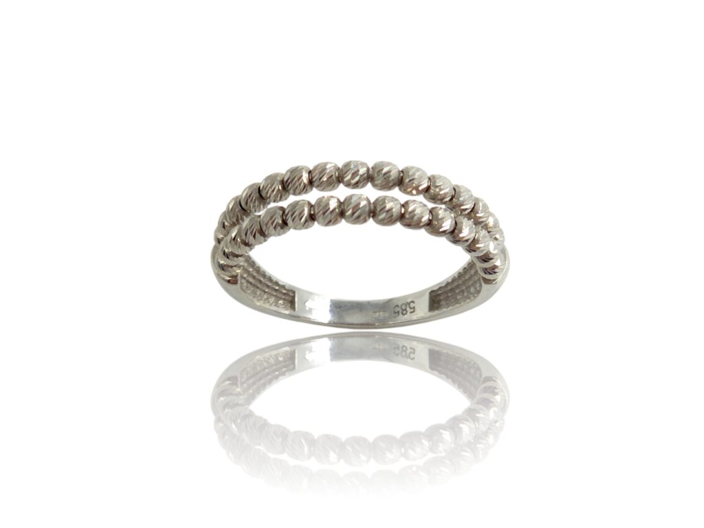 Prsten z bílého zlata s kuličkami ve dvou řadách - rhodiovaný