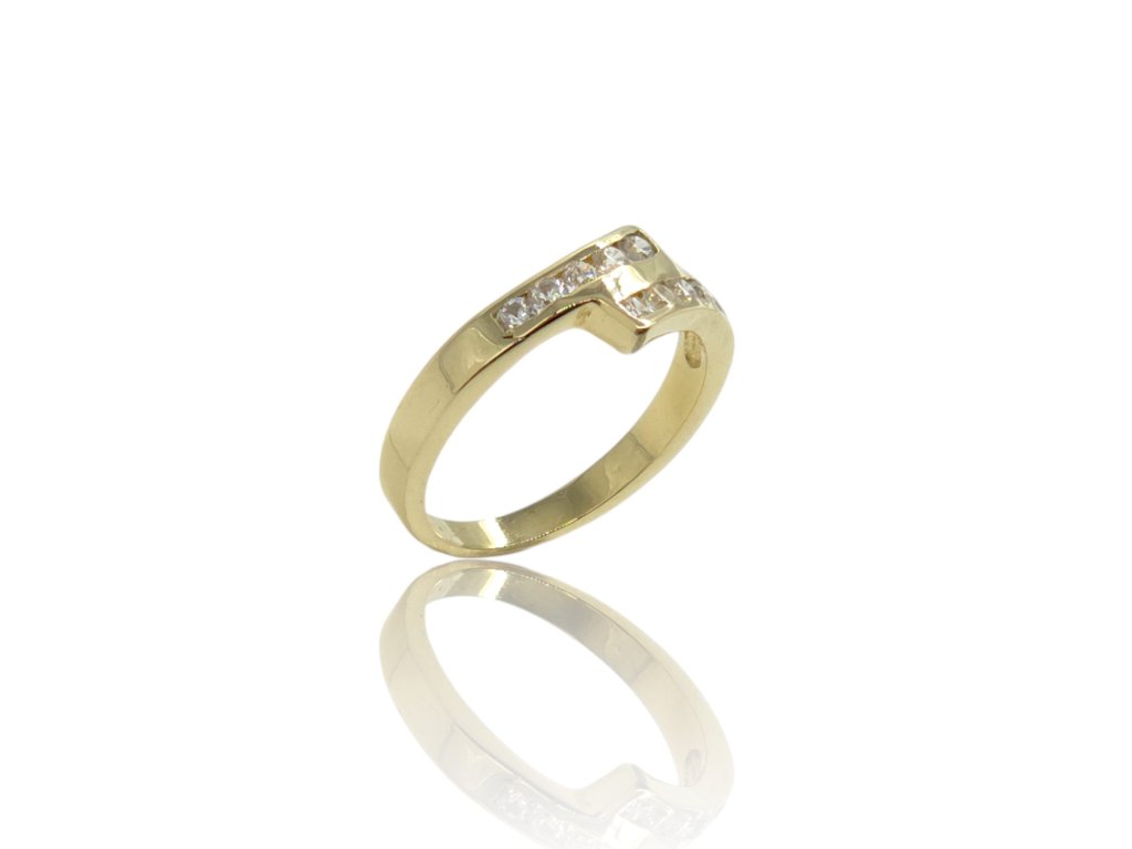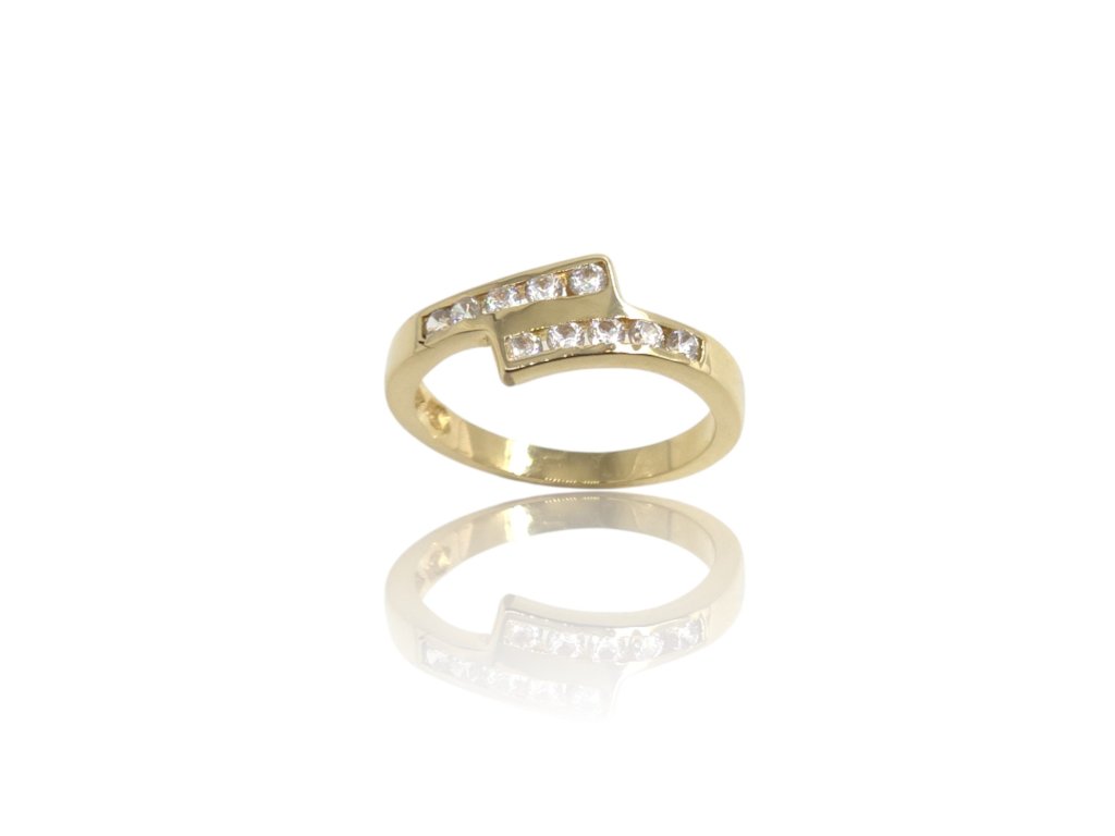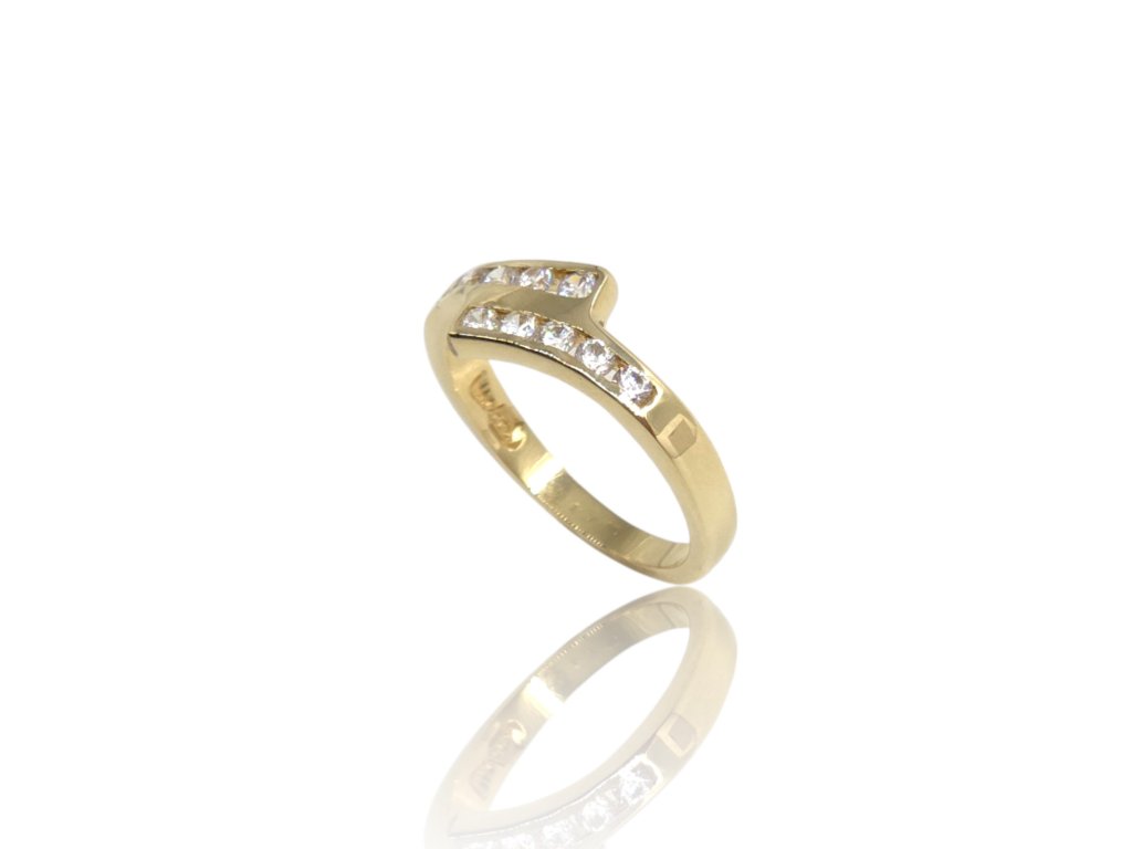 Prsten ze žlutého zlata, se zirkony ve 2 řadách