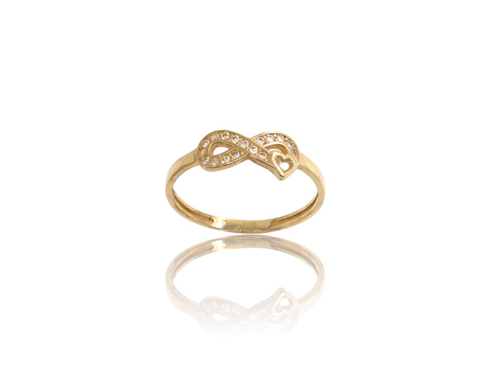 Prsten ze žlutého zlata - nekonečno se zirkony a srdíčkem