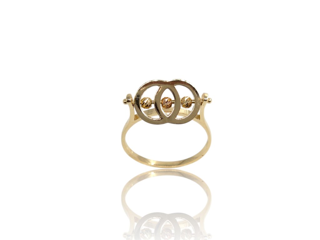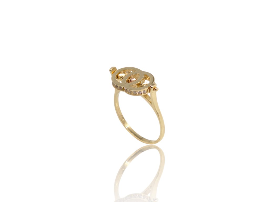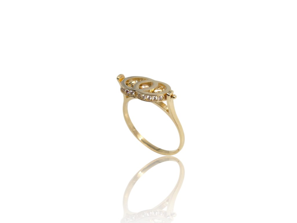 Prsten ze žlutého zlata - propojené kroužky zdobené zirkony - otočné