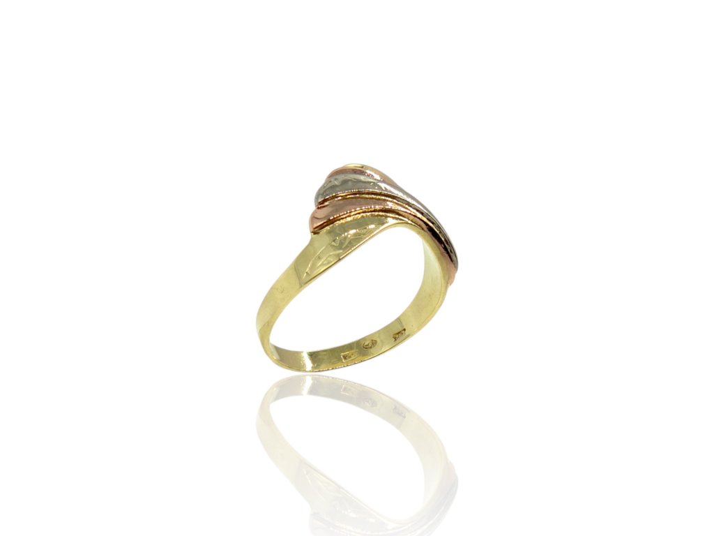 Prsten kombinovaný ze žlutého, růžového a bílého zlata
