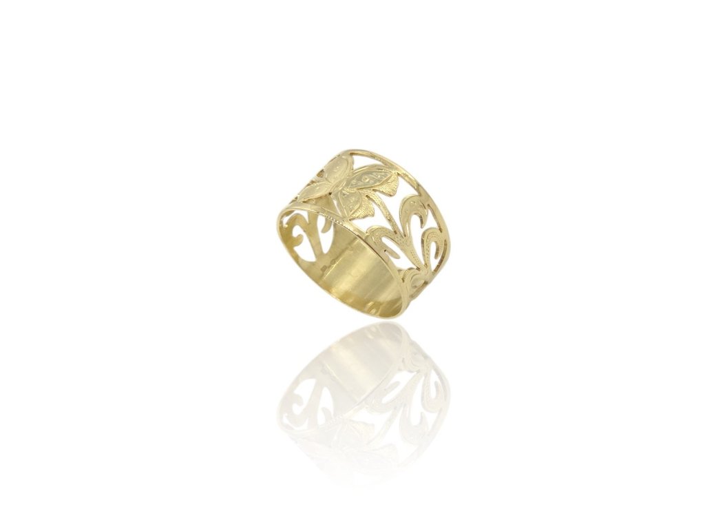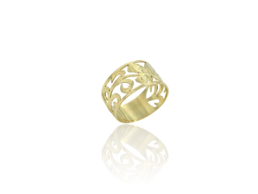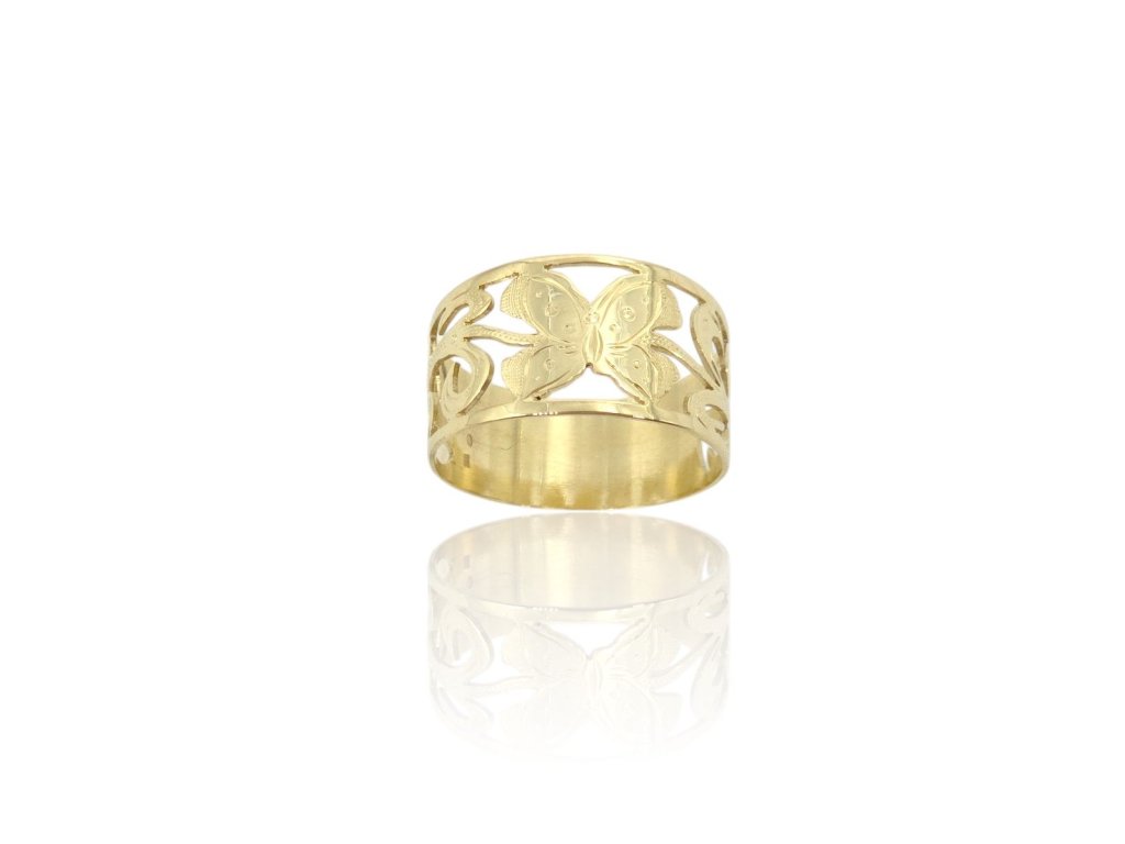 Prsten ze žlutého zlata - vyřezávaný kroužek s motivem motýla