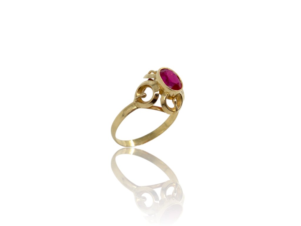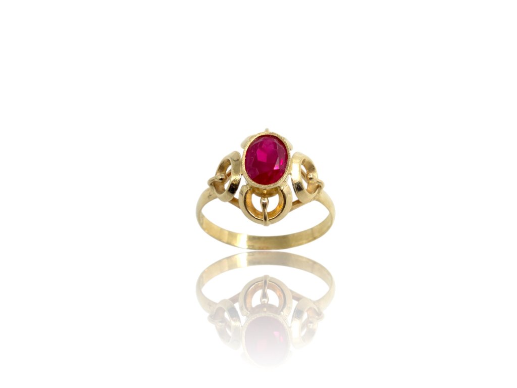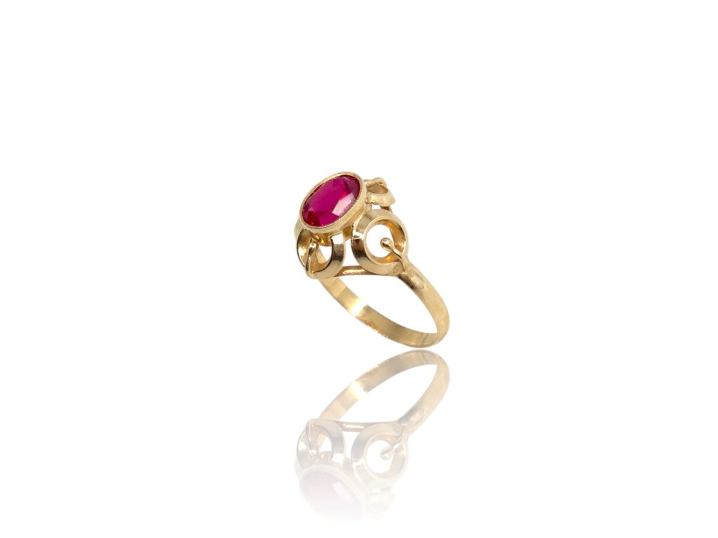 Starožitný prsten ze žlutého zlata s červeným kamenem