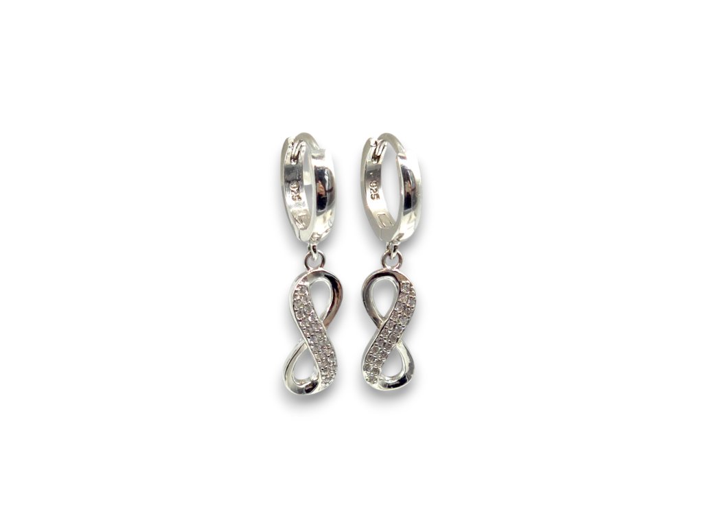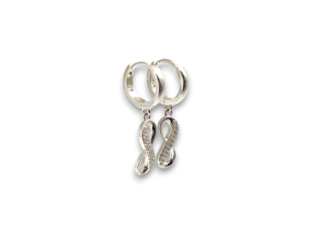 Stříbrné náušnice kroužky s nekonečnem a zirkony, rhodiované, Ag 925