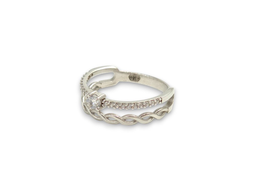 Stříbrný prsten rhodiovaný, dvojitý, se zirkony