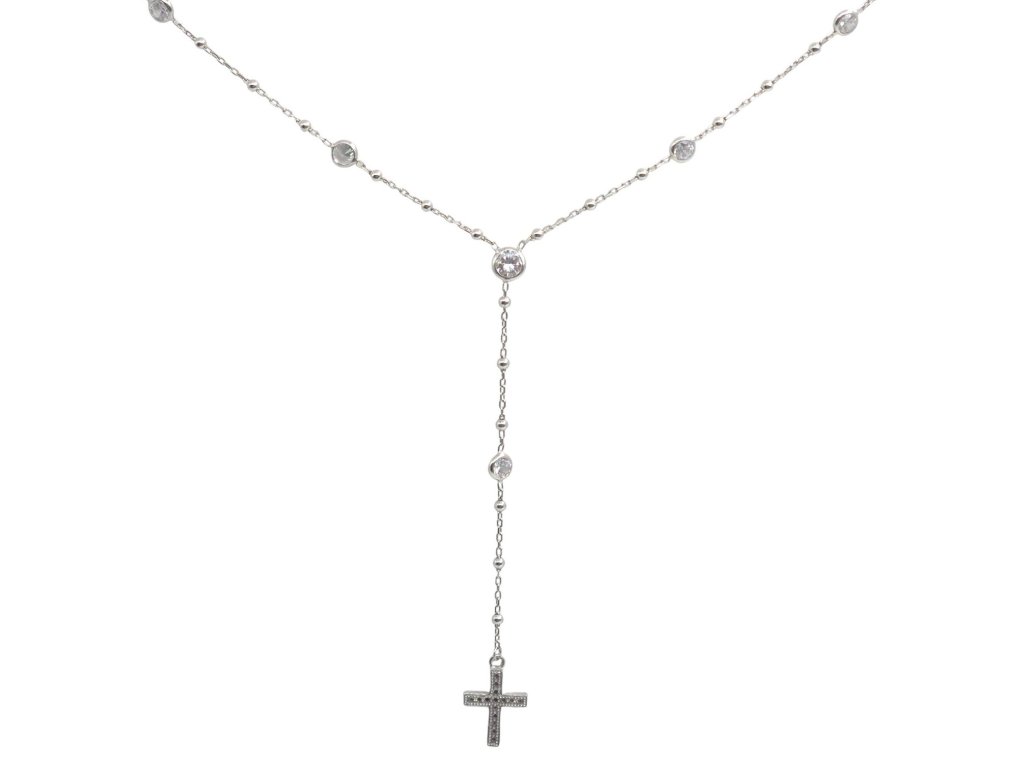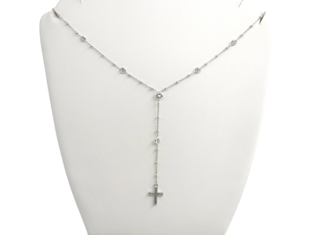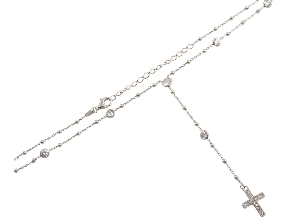 Stříbrný dětský růženec se zirkony, 34-38 cm, rhodiovaný, Ag 925