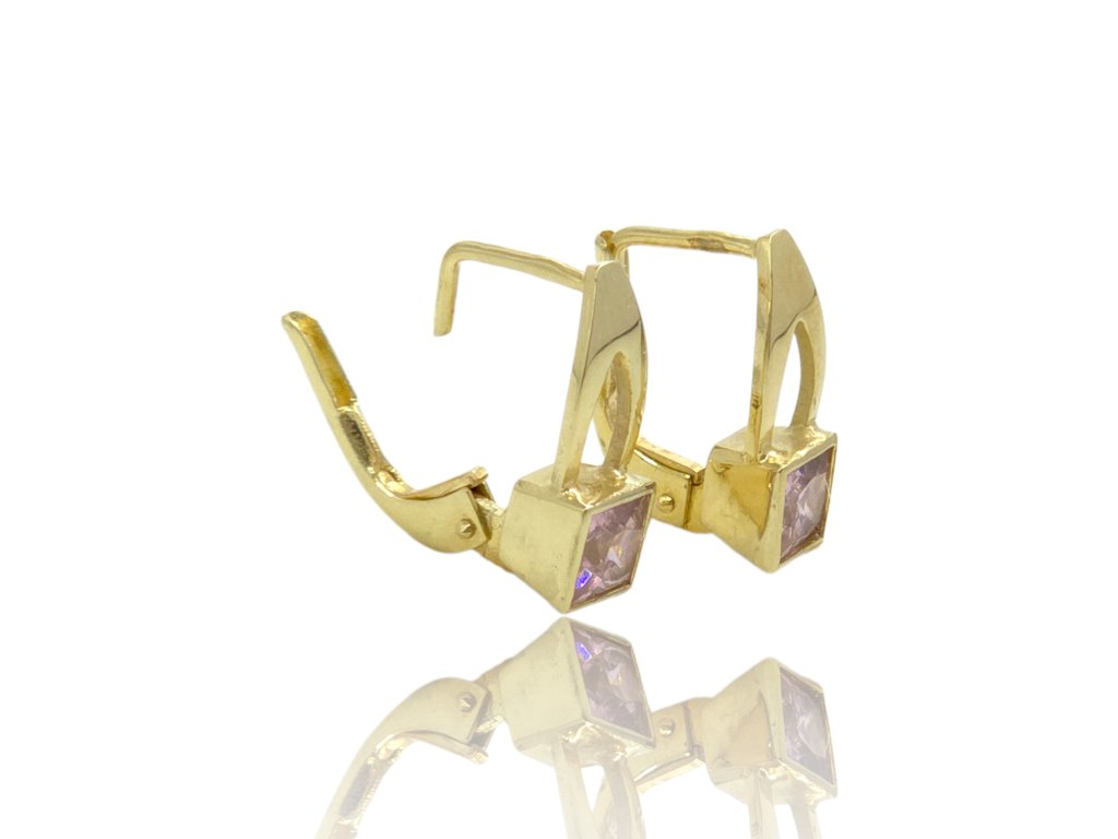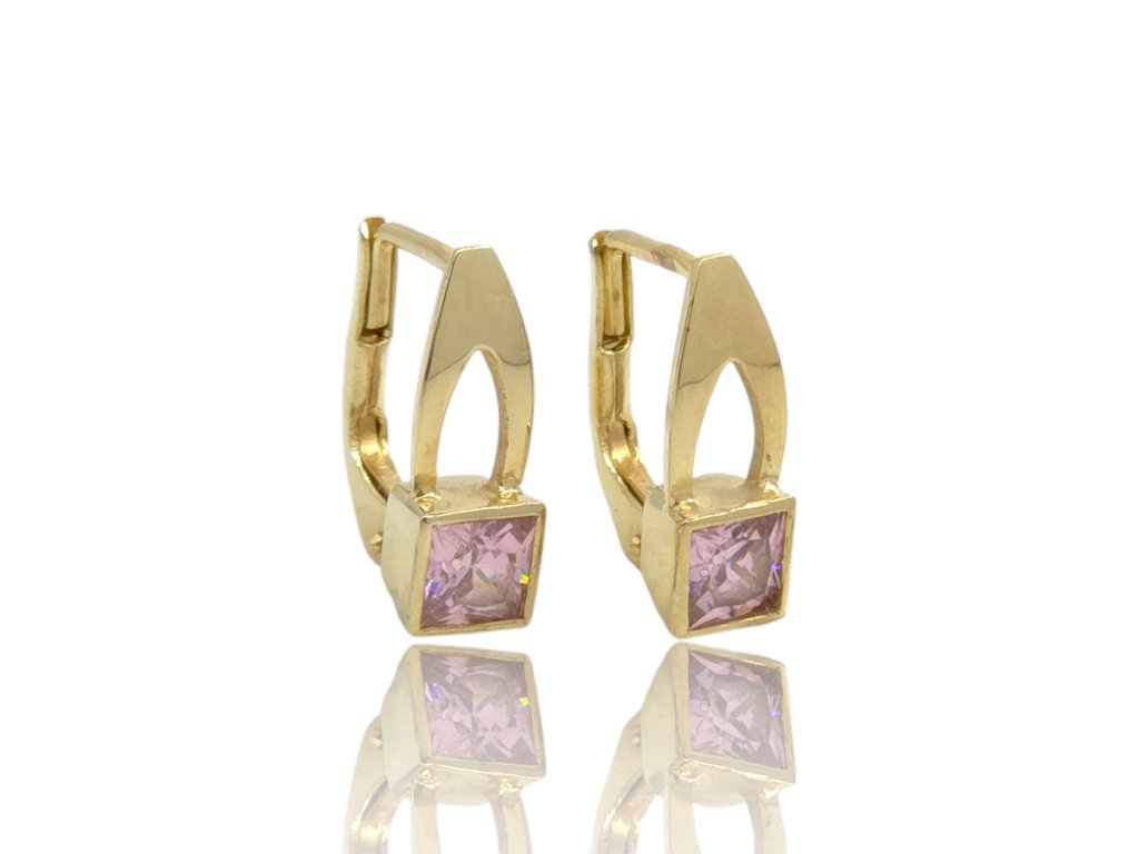 Elegantní náušnice ze žlutého zlata zdobí hranatý růžový kámen zasazený do hladké, minimalistické obruby. Čisté linie a lesklý povrch podtrhují moderní design šperku, zatímco jemný odstín kamene dodává ženskost a něžnost. Zapínání na klapku zajišťuje bezpečné a pohodlné nošení. Ideální volba pro ženy, které mají rády výrazné, ale sofistikované doplňky.