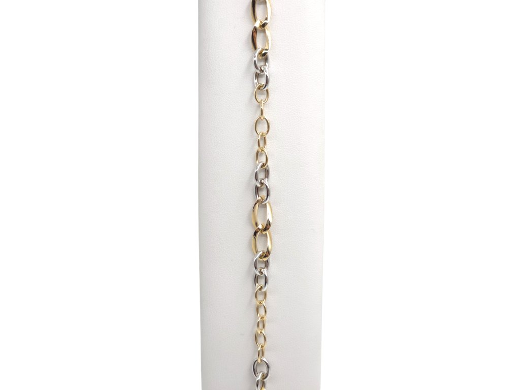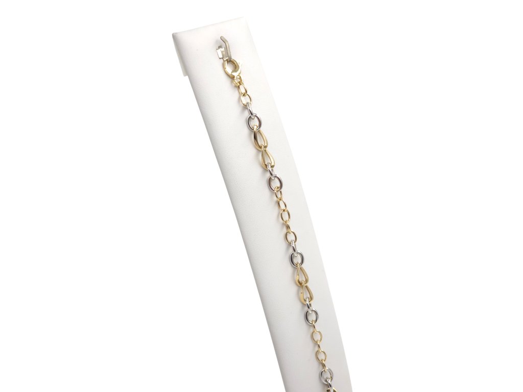 Tento náramek představuje moderní pojetí klasického řetízkového šperku. Je vyroben z harmonické kombinace žlutého a bílého zlata, která mu dodává vysokou variabilitu při ladění s dalšími doplňky.