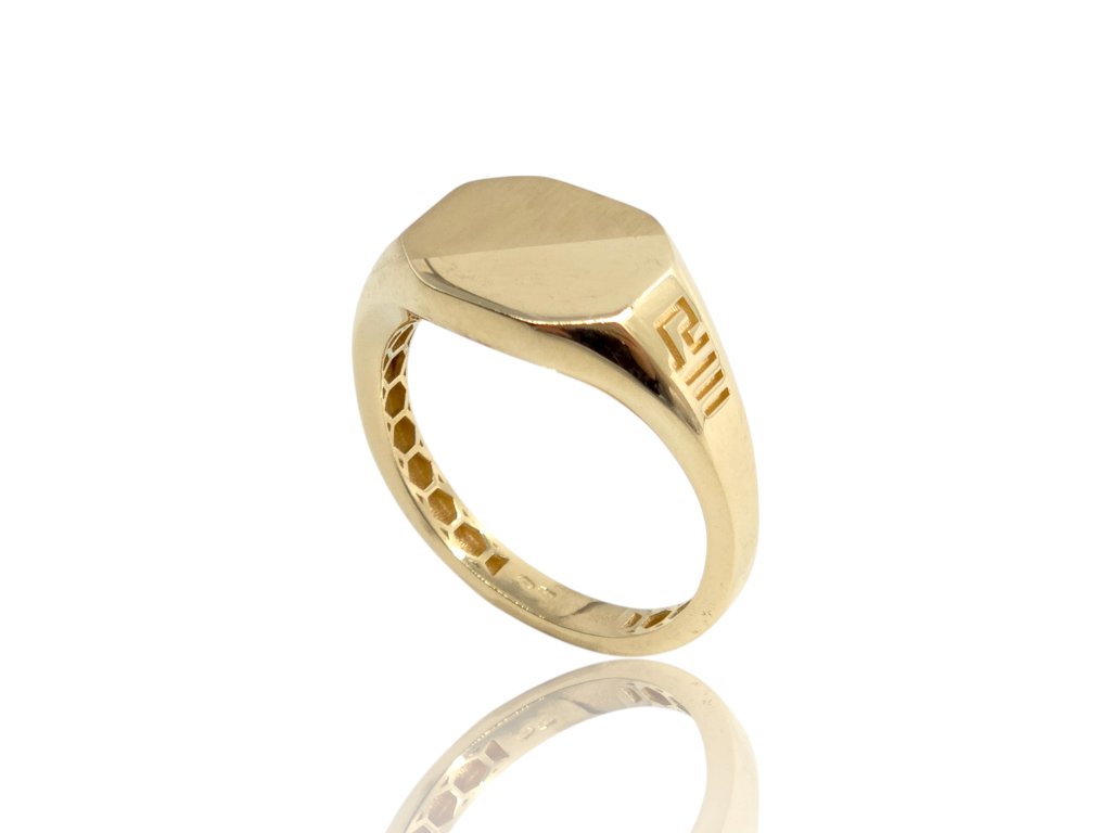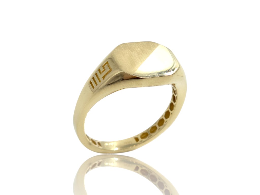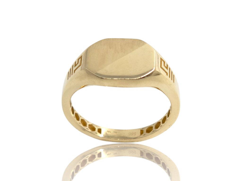 Pánský prsten ze žlutého zlata v klasickém pečetním provedení. Hladká horní plocha s kombinací lesklé a matné části působí čistě a nadčasově, zatímco jemné plastické detaily na bocích dodávají šperku osobitý charakter. Precizní zpracování a pevná konstrukce z něj činí výrazný doplněk vhodný pro každodenní nošení i slavnostní příležitosti. Ideální volba pro muže, kteří preferují tradiční eleganci s moderním nádechem.