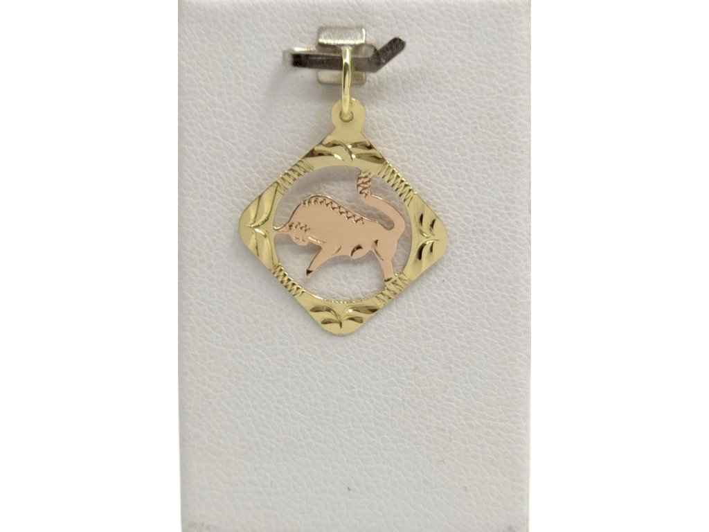 Zlatý přívěsek se znamením Býka, zpracovaný v kombinaci žlutého a růžového zlata. Plasticky ztvárněný motiv býka v růžovém zlatě je zasazen do geometricky tvarovaného rámu ze žlutého zlata s jemným rytím po obvodu. Precizní zlatnické zpracování podtrhuje pevnost a stabilitu, které jsou s tímto znamením spojovány. Výrazný, ale elegantní šperk vhodný pro každodenní nošení i výjimečné příležitosti.