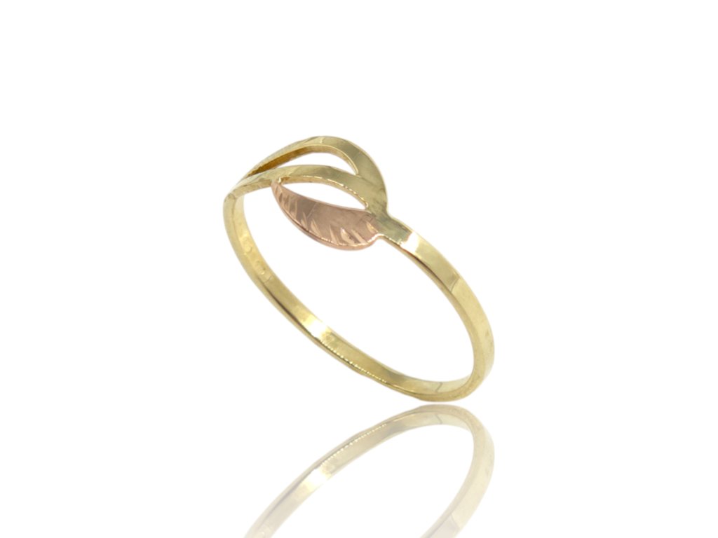 Prsten kombinovaný ze žlutého a růžového zlata, zdobený jemnou rytinou