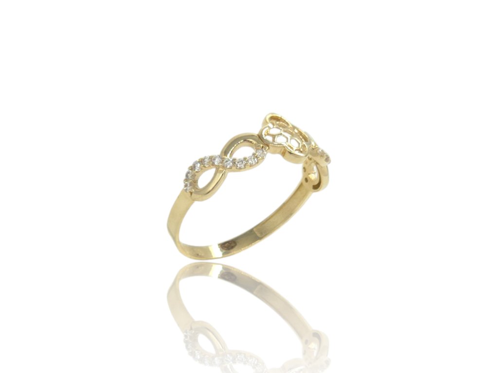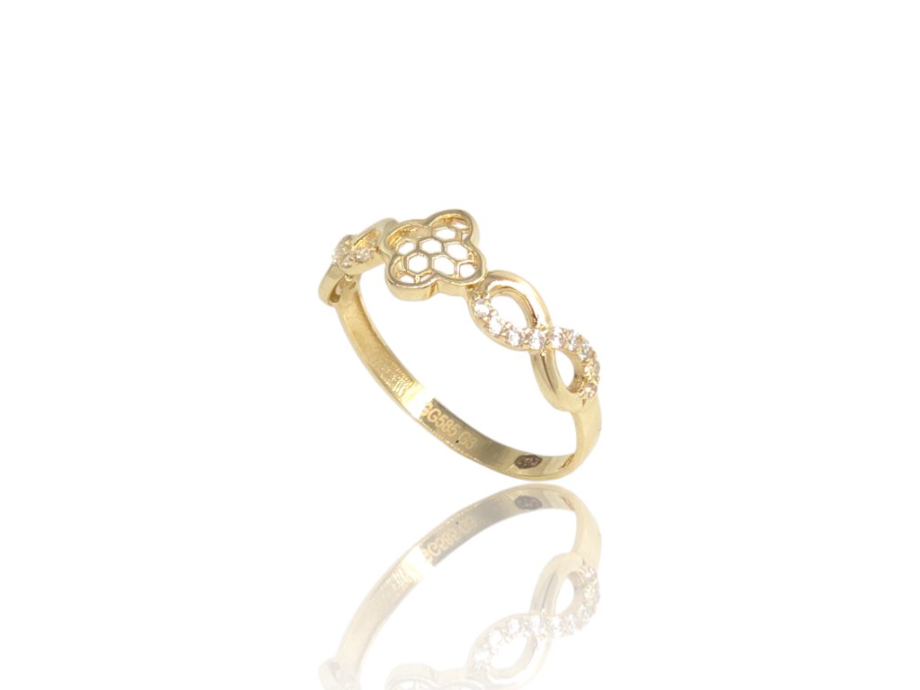 Prsten ze žlutého zlata, čtyřlístek a nekonečna se zirkony